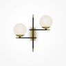 Арматура из металла в цвете матового золота. Плафоны-сферы из матового выдувного стекла. Модная асимметрия в дизайне. Источник света — лампы с цоколем Е14.