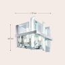 Арматура из металла, цвет – хром. Плафон составляют пластины из прозрачного оптического стекла. Металлический каркас плафона окрашен в тон арматуре. Высота подвесных моделелей регулируется.
