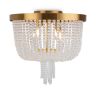 Материал абажура — хрустальное стекло, цвет — прозрачный. Металлическая арматура в цвете латунь. Потолочный светильник не регулируется по высоте. Источник света — лампы с цоколем Е14. Степень защиты — IP20.