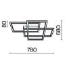 Металлическая арматура, оттенки — белый и черный. Матовый акрил скрывает интегрированные LED-источники. Геометричный дизайн: конструкция состоит из наложенных друг на друга прямоугольников.